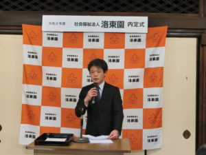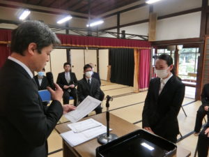 洛東園では、本堂にて4月から採用となる新卒者の内定式を行いました。
